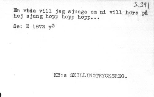 //// ^^ t ^ //// En vMa vill jag sjunga om ni vill höra på //// hej sjung hopp hopp hopp... //// Se: E 1872 y3 //// * //// * //// KB: s 3KILLDIGTRYCKSREG. ////
