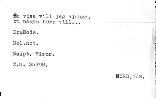 //// 3n visa vill jag sjunga, //// om någon höra vill... --- --- //// i //// Dr$Bode. //// Mel.not. ? //// i //// Mskpt. Visor. i //// i //// E.U. 35498. ! //// H //// t //// f //// NORD.MUS. ! //// ^ ' ! ////