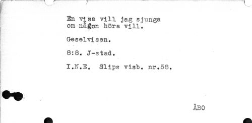 //// En visa vill jag sjunga //// om någon höra vill. //// Geselvisan. //// . //// i //// . //// 6:8. J-stad. //// I.N.E. Slips visb. nr.58. //// ! //// C ////