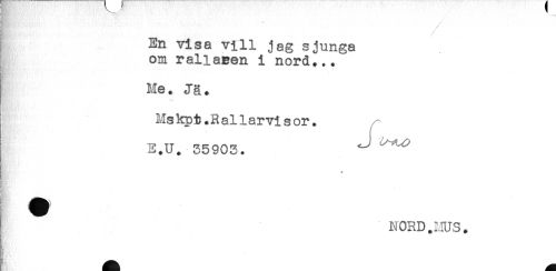 //// En visa vill jag sjunga //// om raliaeen i nord... //// Me. Jä. //// ; Mskpt.Rallarvisor. /- //// E.U. 35903. ^ //// ii //// j K ORD.MUS. ////