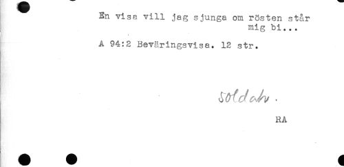 //// En visa vill jag sjunga om rösten står //// mig bi... //// A 94:2 Beväringsvisa. 12 str. //// RA ////