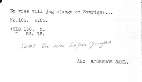 //// : //// En visa vill jag sjunga om Sveriges... //// No.105. s.25. //// :SLS 130, 3. //// " 54. 15. //// j : , ^- - ! //// ÅBO SJÖBERGS SÅML. j //// ! ////