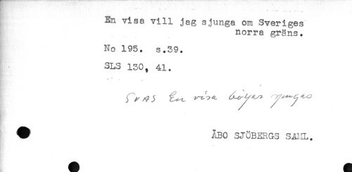 //// En visa vill jag sjunga om Sveriges //// norra gräns. //// No 195. s.39. //// SLS 130, 41. //// C *" ' //// ÅBO SJuBERGS SAIIL. ////