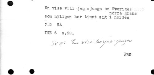 //// En vise vill jag sjunga om Sveriges ; - //// norra gräns //// som nyligen har timat sig i norden //// * //// 7:5 SA //// INE 6 s.52. //// \ //// ABB ////
