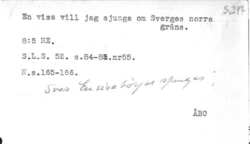 //// v ' //// En visa vill jag sjunga om Sverges norra //// gräns. //// 8:5 RE. //// . '* . ** //// S.L.S. 52. s.84-8$.nr55. //// * * //// N.s.165-166. //// ÅBO //// ä //// H //// = //// ^ ! ////