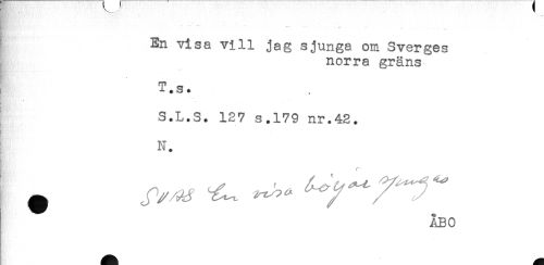//// En visa vill jag sjunga om Sverges //// I norra gräns //// T.s * //// * //// S.L.S. 127 s.179 nr.42. //// N. //// i*'. //// ÅBO ////