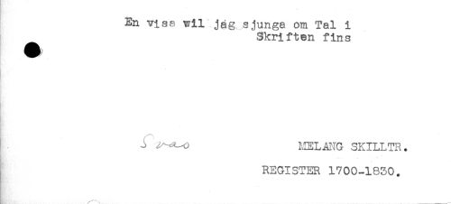 //// En viss wil jag sjunga om Tal i //// Skriften fins //// {^^^^^^^^^^^ a //// ; //// ^ ' MELAI-IG SKILL TR. //// . , //// REGISTER 1700-1830. //// / \ ___ ////
