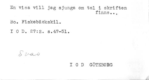 //// En visa vill jag sjunga om tal i skriften //// finns... ! //// Bo. Fiskebäckskil. //// I 0 D. 27:2. s.47-51. //// I O D GÖTEBORG ////