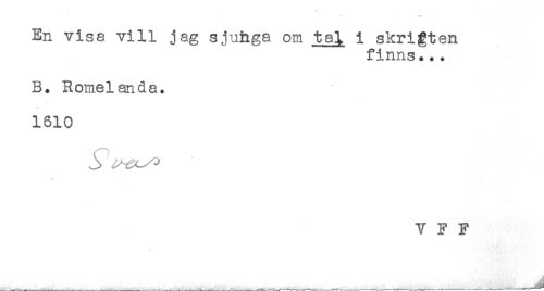 //// En visa vill jag sjuhga om tal i skrigten //// finns... //// B. Romelanda. //// 1610 //// V F F //// __ ..... ////