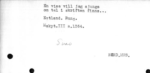 //// En visa vill jag sjunga //// om tal i skriften finns... //// Estland. Run^. //// Mskpt.III s.1364. //// f : //// , * ' ' ////