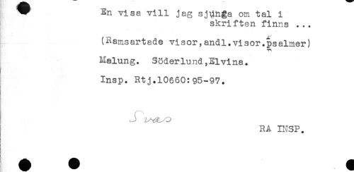//// ^ ^n visa vill jag sjunga om tal i //// skriften finns ... //// * --it //// (Rams artade vi s or,andl.vi s or.ps almer) //// Malung. Söderlund,Elvina. //// Insp. Rtj.10660:95-97. //// RA INSP. //// * * ////