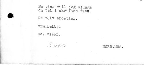 //// En visa vill jag sjunga //// om tal i skriften fins. //// ^^ De tolv apostlar. //// Vrm.Dalby. //// Ha. Visor. //// J) ^^ NORD.ms. ////