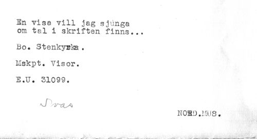 //// En visa vill jag sjunga //// om tal i skriften finns... //// Bo. StenkyBis . //// Mskpt. Visor. //// E.U. 31099. //// - . ^ //// N ORJ.HUS. //// . * . * //// ...___ .. . . -. . - . - ____----.--- ////