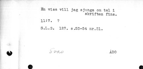 //// F //// K''' //// En visa vill jag sjunga om tal i //// skriften fins. //// 11:7. ? //// S.L.S. 127. s.53-54 nr.31. //// ÅBO //// A. ////