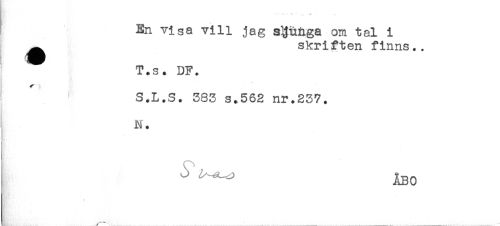 //// En visa vill jag s^uaga om tal 1 //// ^ skriften finns.. //// T.s. DF. //// S.L.S. 383 s.562 nr.237. //// N. //// ^^^ ÅBO //// ' .. ... ....... ////