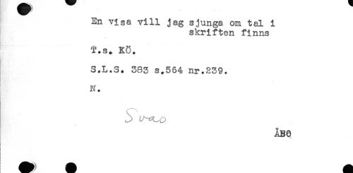 //// En visa vill jag sjunga om tal i //// skriften finns //// T.s* KÖ. //// S.L.S. 383 s.564 nr.239. //// N. //// ÅBO //// t //// - //// ^^ A ^ ////