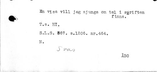 //// t //// } //// En visa vill jag sjunga om tal i skriften //// ^^ ^ f inns. //// T.s. Hl. //// x //// S.L.S. 867. s.1306. nr.464. //// : //// 3 //// { //// N. //// r, //// J //// //// /ÅBO //// ^ -i,. __- A-.- .. ___-_- _____.. ____ - ..„,-. ////