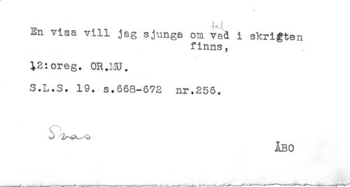 //// En visa vill jag sjunga om vad i skrigten //// finns, //// 12:oreg. OR.1X1. //// S.L.S. 19. s.668-672 nr.256. //// S ////