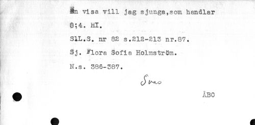 //// 3Éri visa vill jag sjunga,som handlar //// 6;4, hl. //// S1L.S. nr 82 s.212-213 nr.87. //// .... . . . - . //// Sj. Flora Sofia Holmström. //// * ^ * * .., //// N.s. 386-387. //// I //// n- . . ////