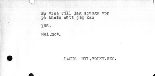 //// En visa vill jag sjunga opp //// på bäata sätt jag kan //// * //// 155. //// Mel. mot. //// - //// - //// # LAGUS NYL.FOLT/.REG. //// * //// - ////