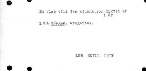 //// En visa vill jag sjunga^som diktad är //// i år //// 1884 KRaaan. Krögarens. //// } //// LUB SKILL UNIK //// nHHHHHn åHHHHHå ////