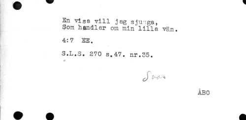 //// Bp.;' //// t < //// En visa vill jag sjuiga, //// Som handlar om min lilla vän. //// 4:7 EE. //// S.L.S. 270 s.47. nr.35. ////