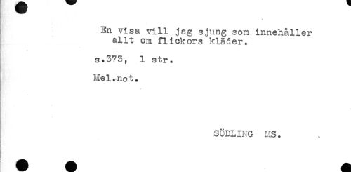 //// En visa vill jag sjung som innehåller //// allt om flickors kläder. //// s.373, 1 str. //// Mel.not. //// * //// g //// SODLING MS. //// ! //// ; //// i //// r ////