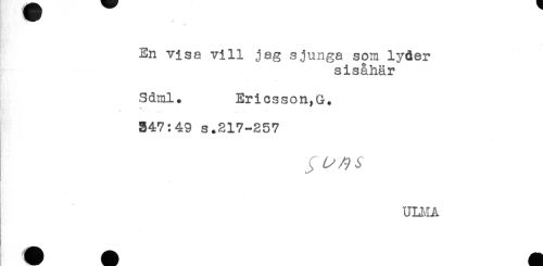 //// t //// En visa vill jag sjunga som lyder //// sisåhär //// Sdml. Ericsson,G. //// SM <' //// 347:49 s.217-257 //// UU-.IA //// K ////
