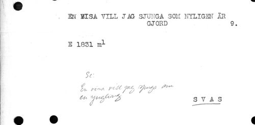 //// Etj EISA VILL JAG SJUNGA SOM NYLIGEN ÄR //// GJORD 9. //// E 1831 ml //// S^y A S ////