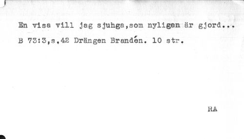 //// En visa vill jag sjuhga,som nyligen är gjord... //// < //// t * * //// B 73:3,s.42 Drängen Branden. 10 str. ////