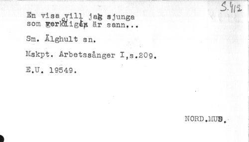 //// En visa vill ja& sjunga //// som KerK3.igé)a är sann... //// Sm. Ålghult sn. //// )- //// ! //// Kskpt. Arbetssånger I,s.20g. //// E.U. 19549. //// ! //// t //// * i //// i //// : //// i //// NORD J.IUS. ////