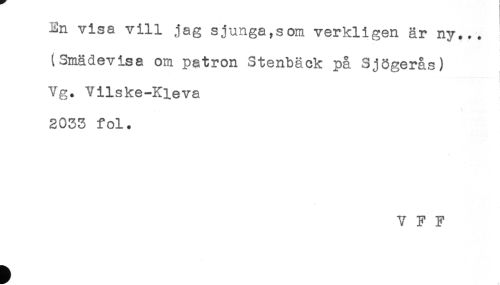 //// En visa vill jag sjunga,som verkligen är ny... //// (Smädevisa om patron Stenbäck på Sjögerås) //// Yg. Vilske-Kieva //// 2033 fol. //// V F F ////