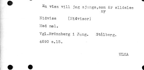 //// ^n visa vill jag sjunga,som är alldeles //// ny //// Nidvisa (Nidvisor) //// Med mel. //// Vgl.Brännberg i Jung. Stålberg. //// 4690 s.15. //// ULHA ////