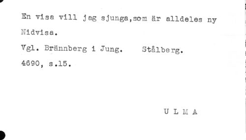 //// En visa vill jag sjunga,som är alldeles ny //// , //// Nidvisa. //// } //// Vgl. Brännberg i Jung. St&lberg. I //// 4690, s.15. //// ] //// < ////
