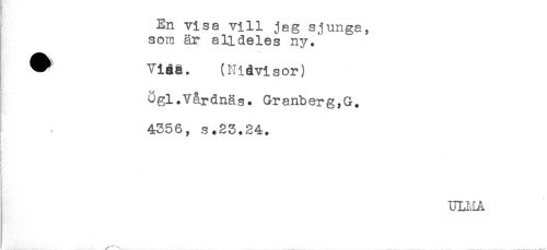 //// En visa vill jag sjunga, //// som är alldeles ny.' //// ^ Viåä. (Nidvisor) //// Ogl.V&rdnäs. Granberg,G. //// 4356, s.23.24. //// ' //// !! //// t //// ULI.1A ////