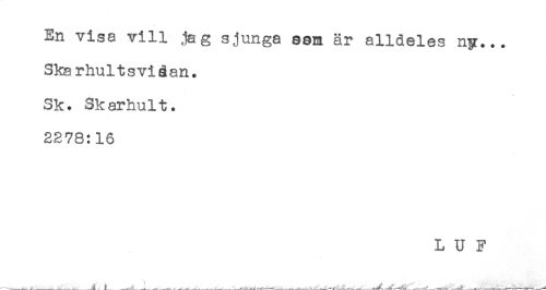 //// En visa vill jag sjunga eent är alldeles ny... //// Skarhultsviåan. //// Sk. Skarhult. //// 2278:16 //// L U F ////