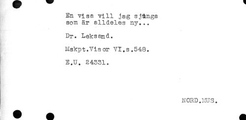 //// En vise vill jag sjunga //// som är alldeles ny... //// Dr. Leksand. //// Mskpt.Visor VI.s.548. //// B- //// E.U. 24331. //// I. //// C.' ////