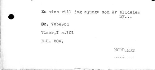 //// ^ En visa vill jag sjunga som är alldeles //// Sk. Veberöd //// ! //// Visor,I s.101 //// j E.U. 204. //// NORD.HUS //// i ^ i * ////