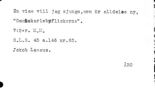 //// En visa vill jag sjunga,som är alldeles ny, //// = //// " GaxrAak ar lebyf li ekorna". //// i //// . //// 7:s+r. M.M. ! //// S.L.S. 45 s.146 nr.63. ^ //// Jakob Lassus. ^ //// ' //// ÅBO j //// j //// B //// ^ ! ////