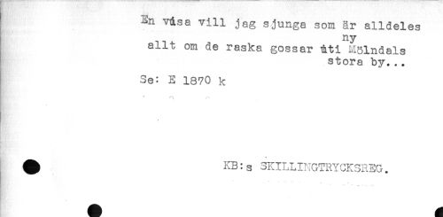 //// Lin visa vill jag sjunga som är alldeles //// t ny //// allt om de raska gossar Éti Mölndals //// stora by... //// Se: E 1870 k //// . //// ^ KB:s SKILLIKGTRYCKSR3G. //// * -* //// -. - . - //// * ////