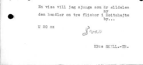 //// En visa vill jag sjunga som är alldeles //// ny //// den handlar om tre flickor i Hoitahajta //// by. .. //// U 20 ss //// KB:s SKYLL.-TR. //// . ////