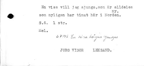 //// En vise vill jag sjungaysom år alldeles //// ny, //// ^^Y som nyligen har timat här i Norden. //// 3.6. 1 str. //// . //// Mel. //// ! //// JOBS VISOR LEKSAND. //// ", _____ ////