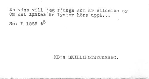 //// En visa vill jag sjunga som är alldeles ny //// Om det X3SX3X Er lyster höra uppå... //// Se: E 1885 t^ //// KB:s SKILLIH GTRYCKSREG. ////