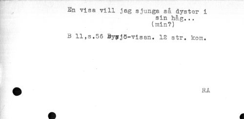 //// En visa vill jag sjunga så dyster i //// sin håg... //// (min?) //// B ll,s.56 Ryyjö-visan. 12 str. kom. //// HK //// - //// * . ////