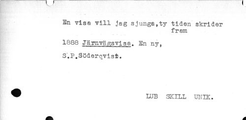 //// t -t //// En visa vill jag sjunga,ty tiden skrider //// fram //// 1888 Järnvägsvi sa. En ny, //// S.P.Söderqvist. //// * //// t' //// ^ LUB SKILL UI^IK. ////