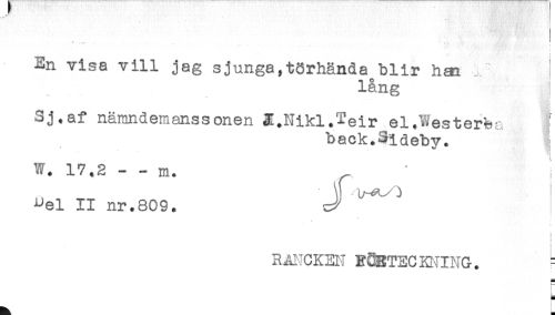 //// - //// En visa vill jag sjunga,törhända blir hm , //// l&ng //// Sj.af nämndemanssonen X.Nikl.Teir el.Westerba 3' //// back.Sideby. i //// W. 17.2 - - m. i //// Del II nr.809. //// i //// ! //// - //// RAI?CKEI-i EÖET3C ENING. ^ //// F ////