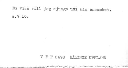 //// En vise vill jag sjunga uj?i min ensamhet. //// s.9 10. //// r //// Y F F 2498 BÅLINGE UPPLAND ////