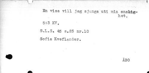 //// - --- //// .... //// En visa vill jag sjunga uti min ensMg- //// het, //// 5:3 //// S.L.S. 45 s+25 nr.10 //// Sofia Kveflander. //// ^ ÅBO ////
