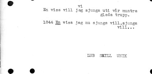 //// ^ vi //// En visa vill jag sjunga uti vår muntra //// gLada trupp. //// 1844 En visa jag nu sjunga vill,sjunga //// vill... //// M //// LUB 3KILL UNIK ////