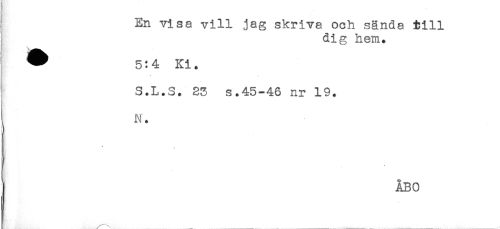 //// ) En visa vill jag skriva och sända till //// dig hem. //// ^ 5:4 Kl. //// S.L.S. 33 s.45-46 nr 19. //// , N. //// ) ÅBO ////
